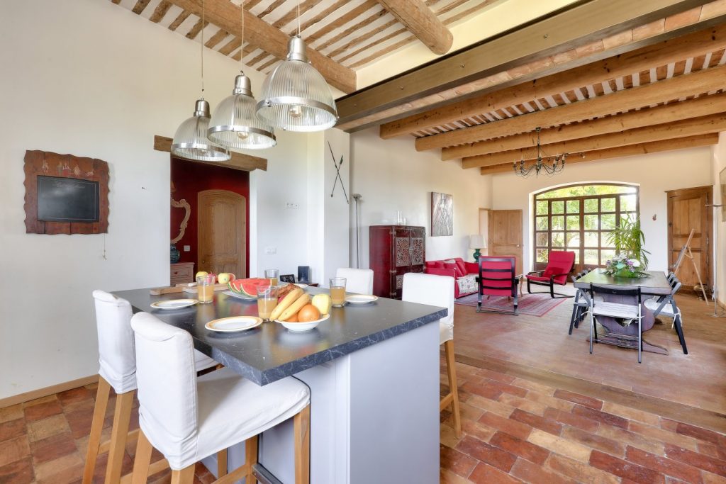 Au Mas de la Souvine, nous avons conçu notre espace cuisine et salon pour qu’il soit le cœur battant de votre séjour, un lieu de convivialité et de partage où chaque moment devient une fête. Notre cuisine entièrement équipée, avec son îlot central et son piano de cuisine, est ouverte sur le salon, créant un espace accueillant et chaleureux.